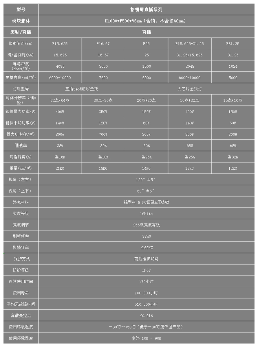 像素间距 :H=15.625,V=15.625单箱体尺寸(mm):500(W)*1000(H)最佳观看距离:15-150M,适合户外远距离观看广泛应用于:室外楼顶,楼宇玻璃幕墙等需要通风透光的场合。