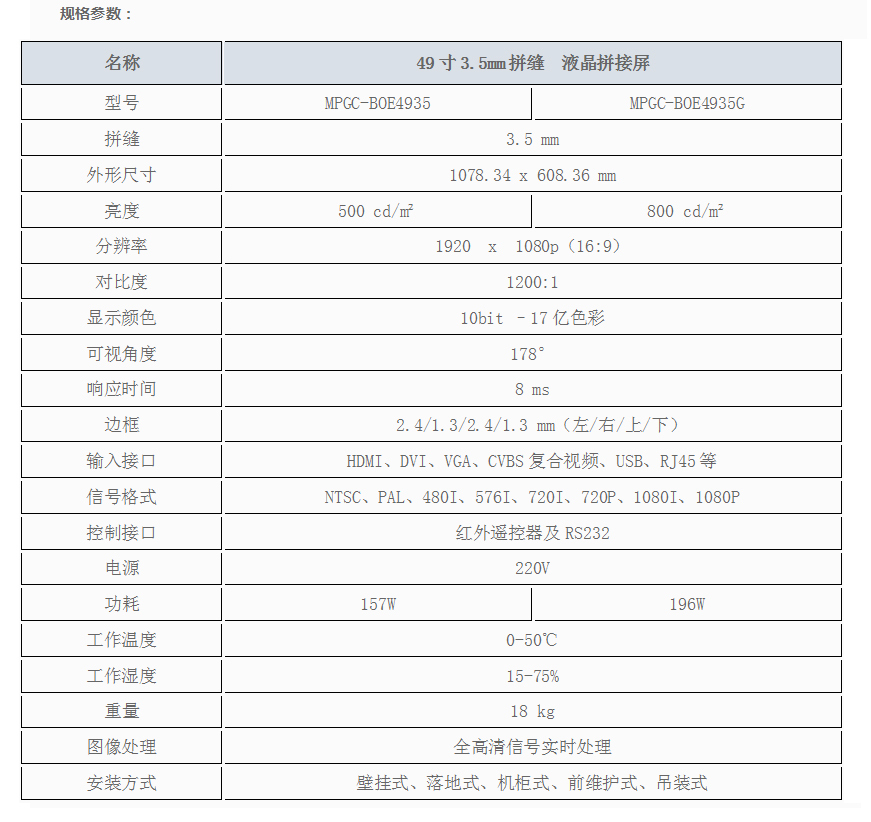 京东方49寸3.5mm拼缝拼接屏,应用东方独有的ADSDS(高级超维场转换技术),按压屏幕无水波纹,无屏闪,画质更清晰,更稳定,更高的光透过率和色彩度;