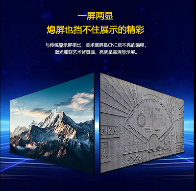 传统LED显示屏在不通电的情况下就是一块黑屏,无法做到与应用场地的背景完美的融合。而LED绘画屏则不然,在不通电的情况下可以是一副背景图,也可以是与您场地背景完美融合的画面。