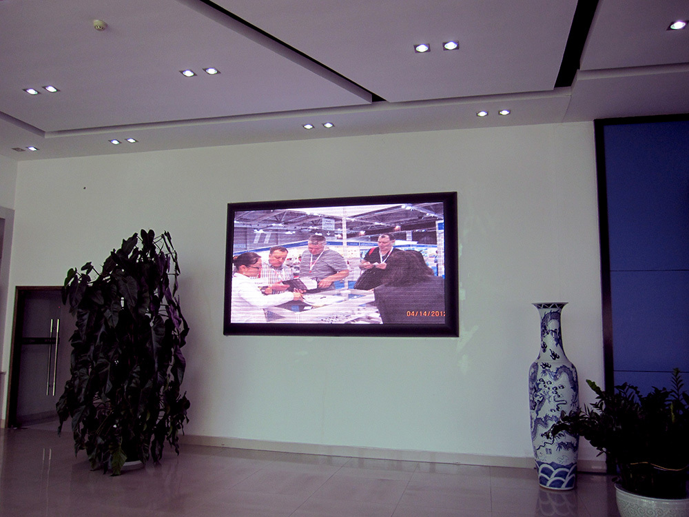 特色:爱特姆深圳公司室内P6全彩LED显示屏,面积7余平方,采用高刷驱动IC,磁铁前维护挂装安装,屏体点亮后效果极佳,并得到用户的一致好评。